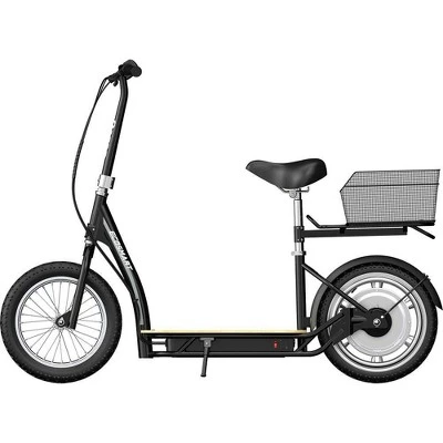 As more people go car-free, going green has never been so stylish with the sit-down Razor EcoSmart Metro HD Electric Scooter. Its comfortable padded seat, and wide bamboo deck for plenty of foot room, make this versatile scooter the perfect ride for neighborhood or cross-campus trips (local laws will apply). Its 16″ (406 mm) pneumatic tires provide a smooth, comfortable ride for quick trips to the store, farmers market, rec center, or wherever you need the ease and versatility of sitting down or carrying things with you. Featuring a detachable basket and luggage rack, this all electric scooter with a 36V leadacid battery system and plug-in charger, requires no gasoline, making it an economical and eco-friendly alternative to make local trips. With its quiet, high-torque, 350-watt hub-driven motor, the Razor EcoSmart Metro HD Electric Scooter can reach speeds up to 15.5 mph (25 km/h),boasts an up to 15.5mile (25 km) range and up to 60 minutes of continuous use. Whether you’re a college student, an eco-conscious adult, or an energetic senior – getting to class, running errands or zipping around the neighborhood on the Razor EcoSmart Metro HD Electric Scooter will quickly become your favorite part of the day. Bring your light to ride it after dark.