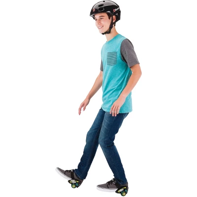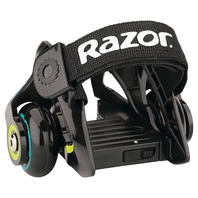 The Razor Jetts Heel Wheels allow you to transform your regular shoes into into the hottest way to roll. These gliding heel wheels are great for kids of all ages, and allow them to easily get around in style. They’re easy to put on and adjustable to fit any size of shoe between US youth 12 and adult 12. The multiple color options will match a variety of sneakers and fit anyone’s style. The Razor Jetts Heel Wheels include both skid pads and spark pads, which are easy to remove and replace. These heel wheels are made from heavy-duty polymer to stand up to lots of use and support up to 176 lbs at a time. The quick click frames make them easy to put on so you can get right to rolling.