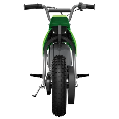 Your kid isn’t afraid of a little dirt. The Razor MX400 Dirt Rocket is ideal for kids and teens ages 13 years and older who want to enjoy a revved-up version of the off-road dirt bike experience. This dirt bike is a high performance, electric-powered, scaled-down motocross bike with authentic dirt bike frame geometry and Supercross-inspired styling.With a high-torque, powerful 350-Watt electric motor, large 12-inch pneumatic knobby tires for maximum power transfer, speeds up to 14 miles per hour, and up to 30 minutes of continuous use (up to 10 miles on a single charge), you’ll be the king of the dirt hill. The road (and the fun) doesn’t stop where the sidewalk ends and your kid can explore it with the Razor MX400 Dirt Rocket.