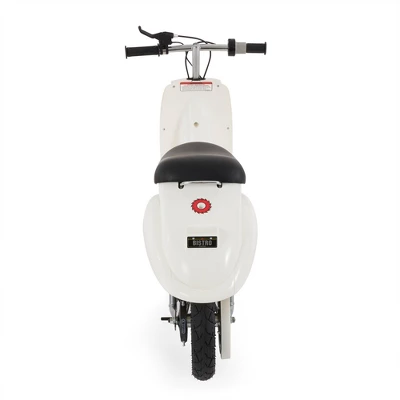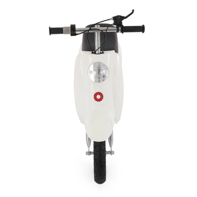 If your child has a need for speed (no worries, only up to 15 mph), then this white Razor Pocket Mod Miniature Electric Scooter will give your child a thrill ride. The Razor Pocket Mod gives every kid with an eye for style and passion for fun a set of wheels that is sure to be the hottest accessory on the block. Vintage-inspired styling meets high performance with the classic Italian scooter design.Featuring a high-performance, chain-driven electric motor, the Razor Pocket Mod can travel up to 10 miles before re-charging and reach speeds of up to 15 miles per hour-plenty fast for a quick trip around the block or a fun ride to the park. The scooter shows off a pair of 12-inch pneumatic tires with a rear suspension system to ensure a comfortable ride.Vroom vroom! Watch out, this white Razor Pocket Mod Miniature Electric Scooter is coming in hot (remember, only 15 mph). Your child will ride around lookin’ fly and catching a nice breeze on their back.