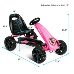 Go Kart Pedal Car Kids Ride On Toys Pedal Powered 4 Wheel Adjustable Seat Pink/Black