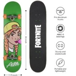Minecraft 31″ Skateboard With Non-slip Grip Tape, Wheels With Aluminum Trucks And ABEC 5 Bearings