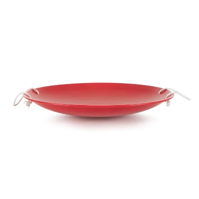 Slippery Racer ProDisc 26 Inch Heavy Duty Aluminum Iron Alloy Metal Kids Winter Saucer Snow Sled With Dual Riveted Soft Grip Rope Handles, Red