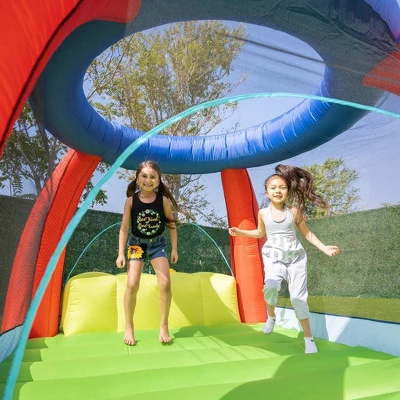 Children will spend hours bouncing, laughing and jumping in the awesome My First Climb ‘N Play Bounce House! Parents will love the durable polyester fabric, double stitched seams and mesh walls, which will ensure children are safe while having a bouncing good time! The bounce house inflates in minutes with the powerful electric blower that is included. The air cushioned slide provides a safe way to enter and exit with style. The fun climbing wall with inflatable rocks provides a fun way to enter and exit the bounce house. Also included are anchors for installation, a storage bag and a repair kit. Bring home Sportspower’s My First Climb ‘N Play and watch your kids’ eyes light up with joy and jump for excitement! The fun never ends with the My First Climb ‘N Bounce House by Sportspower! All Sportspower products meet or exceed all ASTM safety standards, so kids and parents can both enjoy the My First Climb ‘N Bounce House with peace of mind.