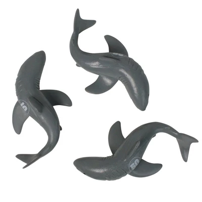 Finally summer is here and the kids are home all day long. Oh no, what are you going to do to keep them busy? Well, how about a little friendly competition in the pool? Then your family will have a splashing good time diving for these sharks and race to see who can collect them first.Features:Set of 3 Swimming Pool Dive ToysThe toy is a replica of a moving sharkSharks have the numbers “10”, “25”, and “50” stamped on the side Toss the sharks into the pool and race to see who can collect them first Each item has a different value on it so you can keep scoreRecommended for ages 4 and olderDimensions: 2.25″H x 7″L x 3.75″W Material(s): plasticSet includes 1 of each item shown for a total of 3 in total