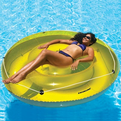 This round comfortable inflatable lounger is perfect for relaxing in the pool or catching some sun at the beach. Perfect for relaxing in the water on a hot summer day. It allows your body to be partially submerged in the water, ideal for cooling off while soaking up the sun. Product Features:Over sized green round swimming pool loungerWhite rope all-around grab line for easy handlingInflatable float is constructed of heavy-duty vinylInflatable is circular shapedContains one PVC repair patchRecommended for ages 13 and upThis is not a lifesaving device – always keep children in sight within quick and easy reach when they are in the water with youDimensions: 72″ diameterMaterial(s): heavy duty vinylNote: ships flat and does not come inflated; this is not a lifesaving device – always keep children in sight within quick and easy reach when they are in the water with you