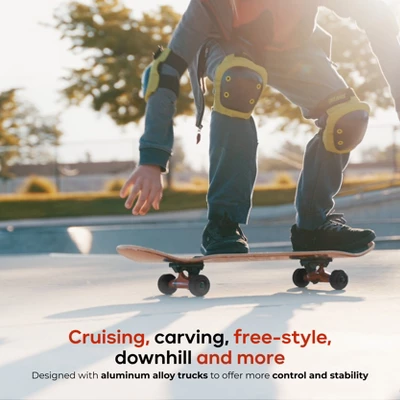 The Tony Hawk 31” Skateboard gives you the ultimate skateboard deck with pro trucks and wheels for any aspiring skater! With neon wheels and glossy finish, our kids skateboard makes the perfect gift for teen girls and boys in need of a board that can hold its own at the local skatepark. The complete skateboard package for active outdoor kids, teen games, or parents looking for kids skateboards for beginners, our skateboards give you everything you need to hit the skatepark confidently! The durable skateboard decks ensure your kids skateboard can take a little abuse at the skate ramp, and the sleek traditional design makes them much more versatile than standard cruiser skateboards. Whether you’re looking for a high-quality boys and girls skateboard for beginners or an awesome new board for your experienced skater, this skateboard has you covered!