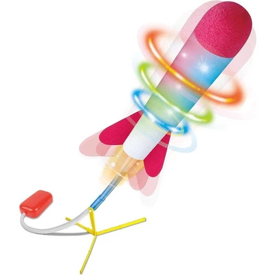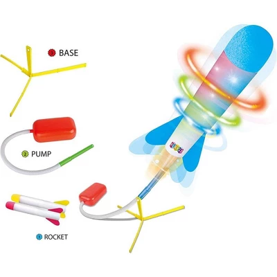 Air Rocket Includes a launcher and 6 colorful LED lights rockets adjustable to soar in all directions. The amazing foam rocket is great for outdoor play. Comes with a pump launcher set that is lightweight and high-quality material. Just jump up and stomp on it with all your weight and the fun will begin. No Batteries Required – Easy To Assemble – Made Of Soft Foam For Safety.