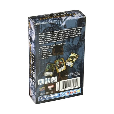 Welcome to an alternative Marvel Universe set in the dark gritty world of hard-knuckled detectives. It’s a grim take on the Roaring Twenties and Depression Thirties with tangled mysteries, flawed Heroes, corruption, betrayal, and moral grey areas. It’s a world immortalized by the Classic Marvel comic series that recasts their Heroes as unique Noir versions. Welcome to Legendary®: Marvel Noir.This expansion consists of 100 all new playable cards and a Color Rule Sheet. The content consists of 5 heroes, 2 new villain groups and 2 Masterminds, and 4 new Schemes. Find all new original art featuring 4 pieces of unique art per hero! This is not a standalone product; a Core Set (including Villains) is required for game play.