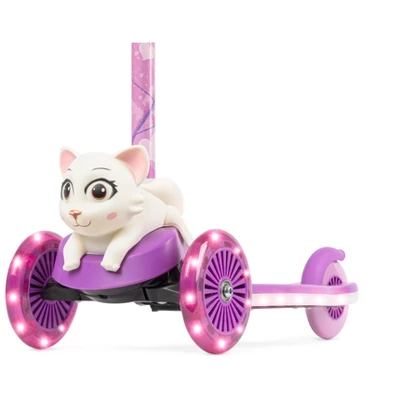 - Safe and Fun: With its Extra Wide, nonslip deck, rear foot brake, and comfortable handlebars, your child will feel as secure as possible while riding the Dimensions Cat 3D 3 Wheeled Kick Scooter! Give your children the safest micro kickboard mini scooter experience you could ask for, with easy-to-use tilt controls, smooth turn steering, and a powerful foot brake. With our scooter your kids can play the day away!