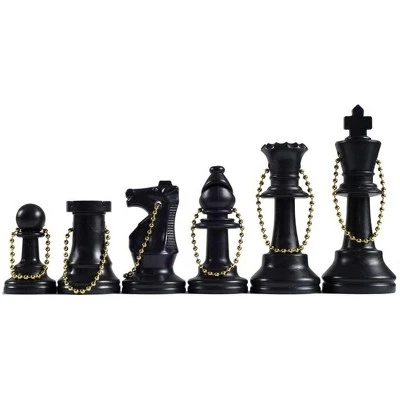 More than just-a-key-chain, these chessmen are actually tournament sized pieces in Staunton style, and with a full set, a game of chess can be played. Be sure to purchase 2 sets of different color pieces for a complete set of chessmen. This set of keychains comes with 17 total pieces and all of the chess pieces are present (king, queen, bishop, knight, rook, and pawns, plus one extra queen). A terrific party favor for chess themed birthday party or game night event. Plastic chessmen with metal keychain are great for backpacks or chess bags! They come in an assortment of fun, vibrant colors and are wildly popular at tournaments where chess enthusiasts place them on their chess bag or back pack.