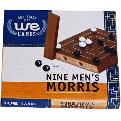 This is an old-fasioned, small wooden marble Nine Men’s Morris game that makes a nice travel companion or gift. The set is wood square that features a wooden door on the side that slides open. The black and white marble pieces store inside the game board. Nine Men’s Morris is an abstract strategy board game for two players that emerged from the Roman Empire. The game’s popularity peaked in Medieval England. Our version of this historic game is beautifully crafted from wood.