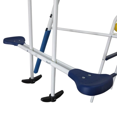The Blue Ridge Play Outdoor Backyard Swing Set by XDP Recreation is loaded with your kids’ favorite outdoor play equipment. With this playset, your children will swing, slide, and play to their hearts’ content all summer long.With 2 non-slip swings your kids can compete to see who can swing the highest. Equipped with SafeTouch chain covers to protect their hands, you’ll be able to relax while they play. This set also comes with a 5.3-foot tall plastic slide with a safe landing zone, metal trapeze swing, and Fun-Glider for up to 2 kids. Constructed with durable 2-inch metal tubing with a powder-coat finish and foam padding, this play set is designed to support up to 6 kids at once or up to 600 pounds.For non-stop fun, and hopefully an opportunity for your 3 to 8 year old kids to burn off some of that extra energy, the XDP Recreation Blue Ridge Play Set is a no-brainer.